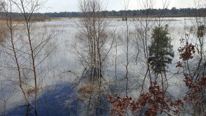 In verband met alle regen van de afgelopen maanden is zwemkleding misschien geen overbodige luxe want dit is normaal een klein vennetje.